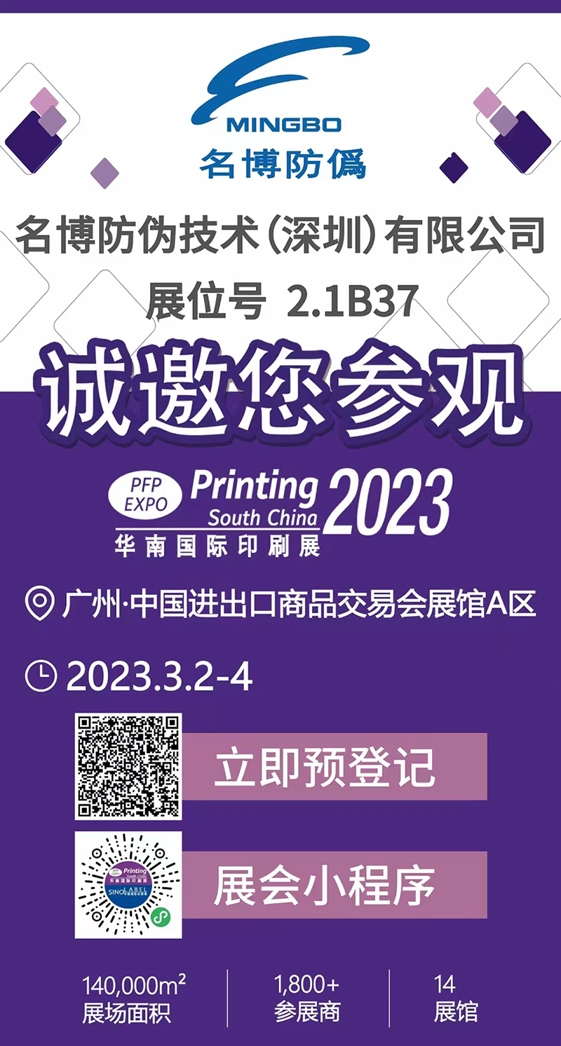 2023年華南國際印刷展,名博期待您的光臨 展位號:2.1B37