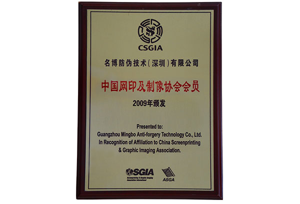 防偽協(xié)會證書