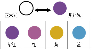 日光變色油墨在室內(nèi)呈現(xiàn)淺色,經(jīng)過太陽光的紫外線照射可以激發(fā)出各種顏色,當(dāng)光源撤離后恢復(fù)成淺色。